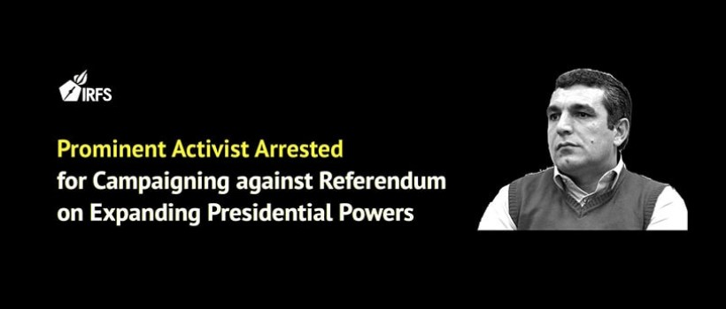 Prominent Activist Arrested for Campaigning against Referendum on Expanding Presidential Powers